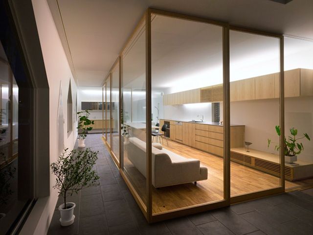 Dřevěná konstrukce využívá sloupy a trámy společně s příčným zavětrováním, což má zaručit odolnost stavby vůči zemětřesení. Nejpozoruhodnější na celém projektu je bezesporu prostor, který odděluje interiér domu od jeho exteriéru. Nejedná se však v pravém slova smyslu o oddělení, tento prostor funguje spíše jako jakýsi mezistupeň mezi vnitřkem a vnějškem domu. Současně sehrává role terasy, verandy, vnitřní místnosti i venku. Věci a zařízení, které se v něm nacházejí (knihy, obrazy, koupelna či studovna), bývají obvykle umisťovány uvnitř domu. Tento prostor zároveň slouží jako nárazníková zóna v případě ohrožení přírodními živly.