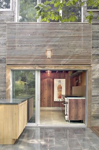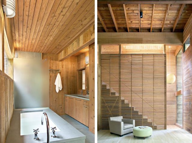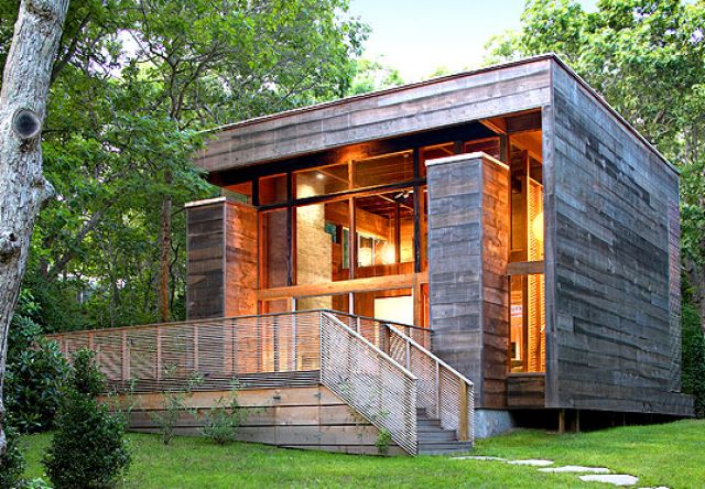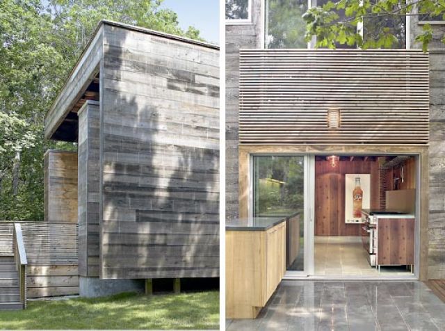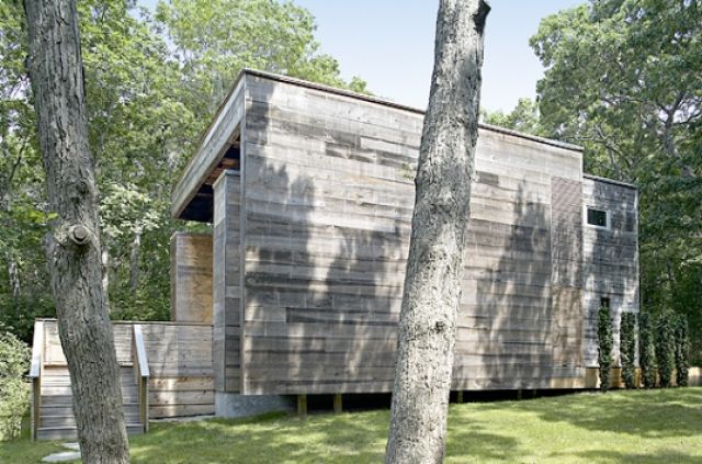 Atelier Bates Masi + Architects navrhnul dům před 35 lety jako prázdninové útočiště v Amagansettu na Long Island. Dům byl postaven výhradně z dvanáctipalcových širokoúhlých cypřišových desek, včetně podlah a stropů. Stavba působí velmi nenápadně, jednoduše a připomíná starou „boudu“ stojící v lese po desetiletí. Nový majitelé se rozhodli původní návrh respektovat, ale zároveň potřebovali najít způsob, jak dům upravit, aby vyhovoval jejich potřebám. Rozhodli se proto jít cestou recyklace hojně využitého cypřišového dřeva. Nakonec byl celý dům mírně rozšířen, fasáda rozebrána a znovu instalována. Díky tomu zůstala zachována původní patina, které s novým materiálem nelze nikdy dosáhnout. Kolemjdoucí tak přesně neví, kde začíná dům nový a kde končí starý. Součástí renovace byla i přístavba venkovní kuchyně s jídelnou.