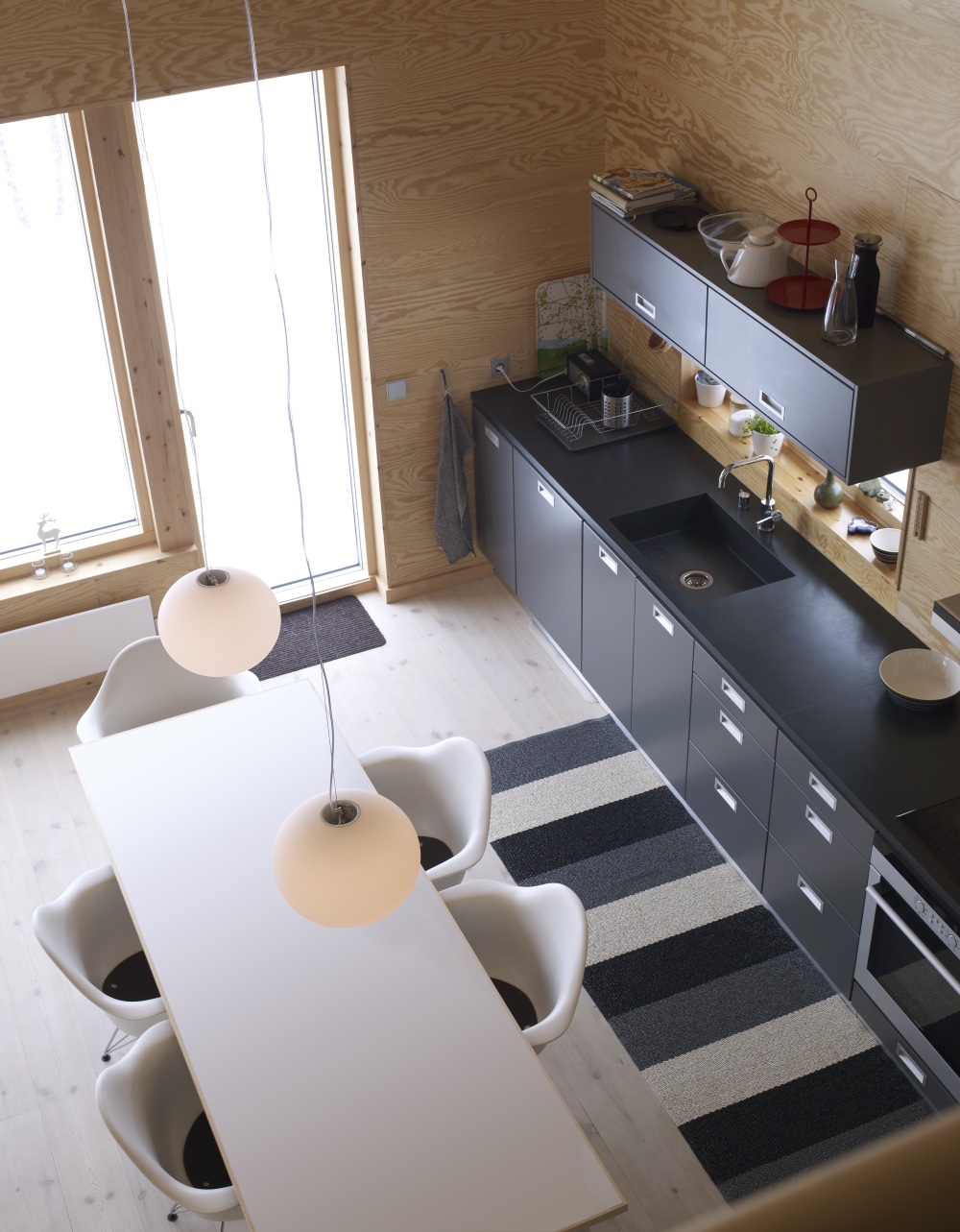 Architekt Peter Sahlin ze studia pS Arkitektur si pro sebe a svojí rodinu navrhl v toce 2005 horskou chatu v oblasti Švédských vřesovišť Härjedalen. Strohý tmavý vnější plášť si vypůjčuje jednoduchost tradičních stodol, které se v této oblasti běžně vyskytují, interiér je naopak bílý a moderní, dominuje mu dřevěný obklad stěn a stropů vyhotovený z překližky. Dnes podobných staveb najdeme v této oblasti hned šest. A rostou další dvě.