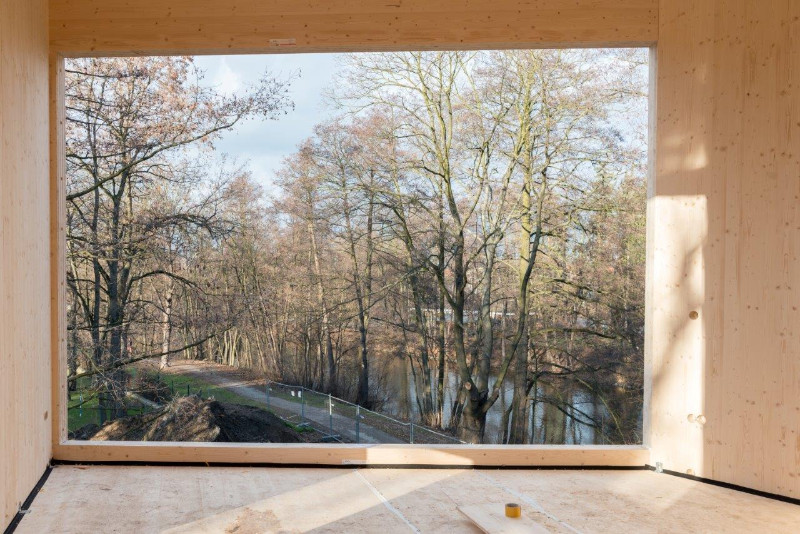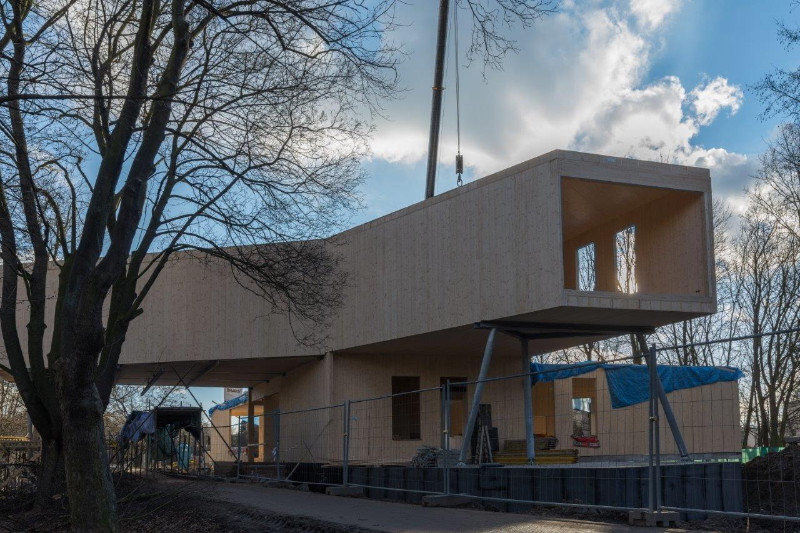 Nosnou konstrukci suterénu tvoří monolitický železobeton. Dvoupodlažní nadzemní část se doslova skládala z masivních panelů z křížem lepeného dřeva Novatop, které si v interiér zachovávají přírodní dřevěný povrch. Rameno druhého podlaží vybíhá nad cyklostezku vedoucí podél Chrudimky, takže cyklisté budou v budoucnu projíždět přímo pod podlahou budovy.