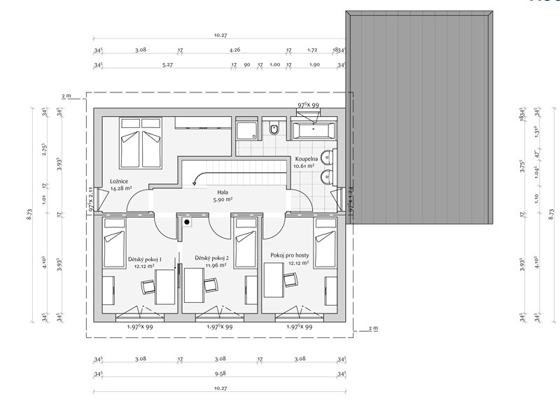 Dům je dovybaven špičkovou technologií – tepelným čerpadlem, kontrolovaným větráním s rekuperací, fotovoltaickým zařízením, systémem inteligentní domácnosti, zdravotechnikou, keramickými obklady, dlažbou a podlahovou krytinou.