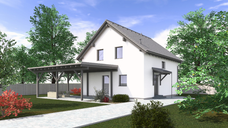 V základní variantě, tedy od projektu se stavebním povolením až po zastřešení celé stavby do fáze hrubé stavby, je pořizovací cena 1 025 000 Kč s DPH. Pokud si necháte dům zkompletovat, tak dostanete další bonus navíc - tepelné čerpadlo v ceně domu!