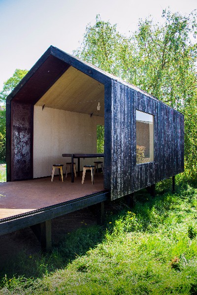V zemědělské krajině na severovýchodě Belgie vznikla unikátní drobná dřevostavba určená k společnému setkávání kolegů designérů, kteří v místě pořádají různé workshopy. Domek je vlastně klubovna, která snadno umožňuje třeba stolování po širým nebem. Neobvyklá je také povrchová úprava fasády.