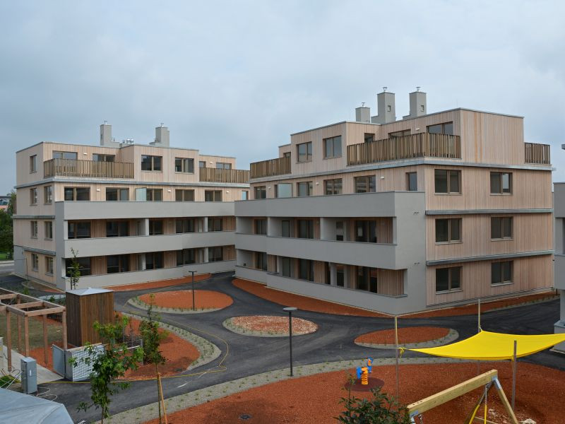 Dodávka montované konstrukce dřevostavby se podle společnosti RD Rýmařov příliš nelišila od klasických tuzemských zakázek. Technické i stavební předpisy jsou v Rakousku velmi podobné těm našim, proto záleželo především na konkrétním přání investora, vídeňského bytového družstva EBG. Velký důraz byl kladen na použití materiálů, jež nemají absolutně žádný negativní vliv na životní prostředí. Proto ve stavbách nenajdeme například ani kousek PVC.