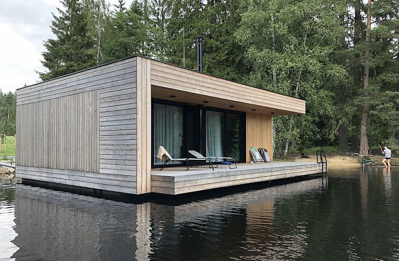 Přáním majitele bylo postavit plovoucí víkendový dům, který bude možné využívat bez ohledu na roční období