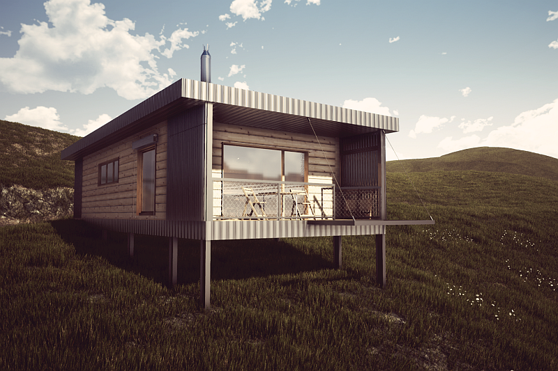 „Roubenka HiKe může být sestavena prakticky během týdne," vysvětluje autor projektu, Lukáš Slezák ze společnosti OK PYRUS. „Nevšední projekt má řadu inovativních řešení, například zásuvné panely z vlnitého plechu, které lze různě polohovat a vytvářet si buď závětří na terase, nebo naopak maximální výhled do okolí."