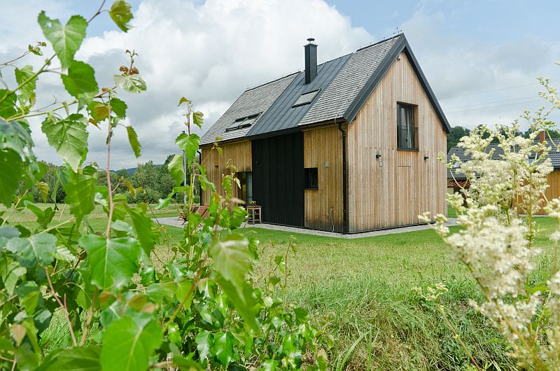 obr.: Na fasádě z neošetřeného dřeva se začíná objevovat tmavá patina, do níž se dřevostavba časem obleče celá. Foto: Martin Zeman