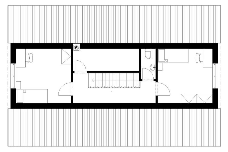Místnosti jsou typologicky uspořádány tak aby byl plně využit prostor a přitom zajištěn plně bezkolizní provoz. Zároveň lze tento typ použít i na pozemcích nepříznivě orientovaných vstupem na jih, či na úzkých parcelách. V objektu bylo dbáno na vyváženost tepelně technického zpracování a nákladů na zhotovení.