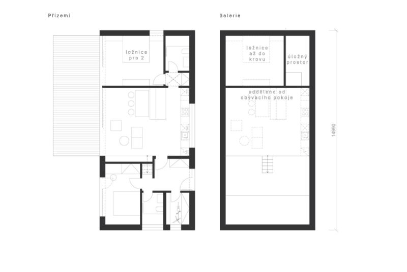 Jednopodlažní dům klasického obdélníkového půdorysu se sedlovou střechou je řešením pro malé rodiny nebo bezdětné páry, které preferují život ve zdravém, komfortním prostředí. Dům může stejně tak dobře fungovat jako „únik" z městského bytu při práci z domova či jako víkendová alternativa. V základní variantě nabízí 62,1 m2 s dalšími 16,5 m2 na platformě pod střechou využitelné jako herna pro děti, spaní pro hosty či jako pracovna. V rozšířené variantě EVO může mít dům dispozici až 4+kk s galerií, přičemž rozšíření domu lze řešit i etapově – na začátku EVO postavit v základní variantě s „přípravou" na přístavbu v budoucnu, až bude podle životních okolností potřeba.