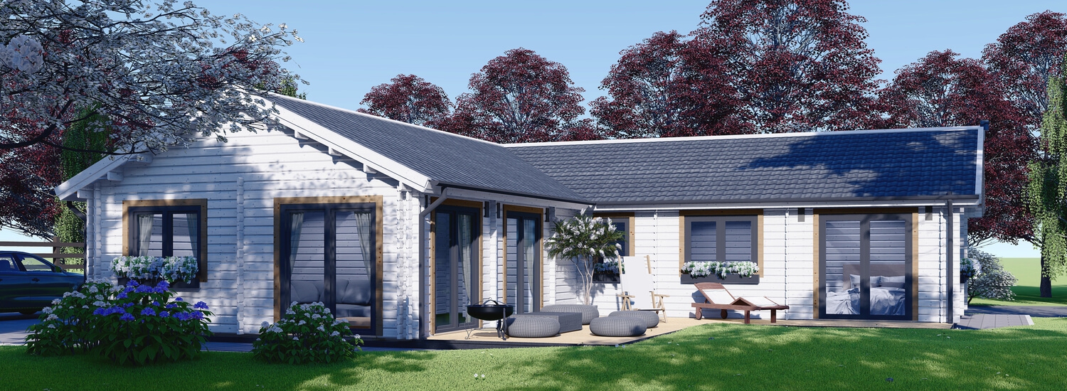 Terasa domu Paula je přístupná nejen z prostorného obývacího pokoje s otevřenou kuchyní, ale i z jedné ze tří ložnic. Dokážete si představit ráno, kdy se probudíte v místnosti z voňavého dřeva a otevřeným oknem k vám zavane vůně ranní kávy připravené na terase? Tak přesně tyto drobnosti dělají z dřevostavby bungalov jasnou volbu pro ty, kdo vyznávají pohodu jako životní styl. A ani zimy se bát nemusíte. Paula má dvě 44 mm stěny z masivního dřeva severských jehličnanů, mezi které je vložená dodatečná tepelná izolace stejně jako do podlahy.