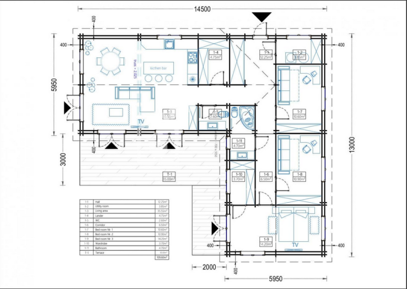 - Základní cena: 1 396 700 Kč (DPH, systém dřevěných prvků pro stavbu obvodových stěn, příček a krovu, okna a dveře s izolačním dvojsklem, střešní a podlahové palubky. V ceně není zahrnuta montáž, ošetření dřeva a nátěry, okenice, krytina, okapový systém atd.)