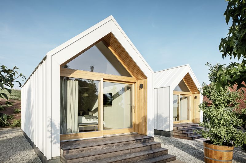 V malebném prostředí slovinského města Kančevci se nacházejí dva malé bílé modulární domky, které dokonale spojují moderní architekturu s přírodou a historickým rázem oblasti. Tyto stylové stavby, navržené architekty ze studia Kubico domino arhitekti, byly postaveny s využitím přírodního dřeva a prvotřídního materiálu PREFALZ, čímž vznikl projekt, jenž respektuje okolní krajinu a zároveň přináší komfort moderního bydlení.