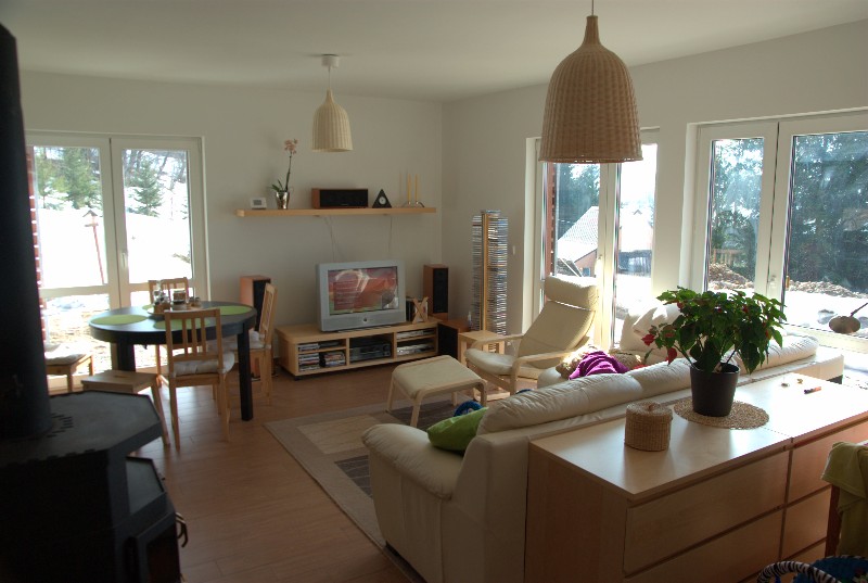I když v novém domě bydlíme jen krátce, zatím se nevyskytl žádný závažnější problém. Naopak nás příjemně překvapily tepelně-izolační vlastnosti a komfort bydlení v dřevostavbě jako takové. Tedy i přes podstatně menší akumulační schopnosti, než má zděný dům, má v zimním období naše dřevostavba velmi dobrou schopnost udržet teplo (hlavně přes noc, kdy se netopí). Na druhou stranu po příchodu z práce nebo po vícedenní nepřítomnosti je po spuštění topení doma takřka okamžitě příjemné teplo.