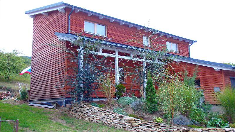 Po tříleté zkušenosti s bydlením v našem domě jsme celkově velmi spokojeni s fungováním domu jako celku i s jeho dispozicí. Při realizaci jsem počítal s budoucí instalací solárních panelů na pergolu za domem a pro tento účel jsem připravil nerezové potrubí od akumulační nádrže přes fasádu domu v zadní části.