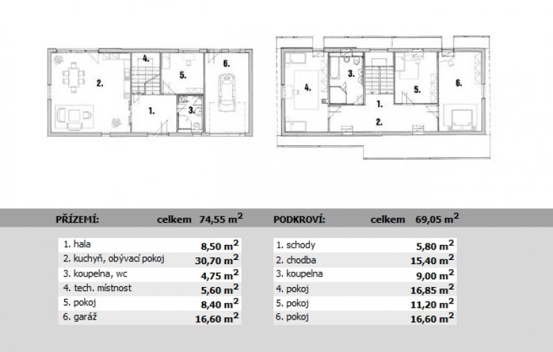Moderně řešený dvojpodlažní objekt rodinného domu DIARON od společnosti LOGOS D+J s.r.o. je vhodným řešením pro čtyř- až pětičlennou rodinu. Objekt s garáží a terasou pro venkovní posezení nabízí dispozici 5+kk. V přízemí najdeme obývací pokoj s kuchyní a pokoj, který lze využít jako pracovnu či pokoj pro hosty. V patře je pak spíše část noční se třemi ložnicemi.